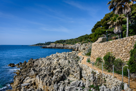 Ce rivage fut celui des artistes : Sacha Guitry, Greta Garbo ou Winston Churchill y avaient leurs repères. Le sentier permet aujourd’hui encore d’approcher leurs anciennes résidences depuis la terre, tout en gardant un oeil sur la mer. La promenade est jalonnée de panneaux explicatifs, mais l’essentiel se passe ailleurs : dans cette proximité permanente avec l’eau, dans cette alternance de passages suspendus et de criques baignées de lumière, où l'on retrouve parfois l’annexe d’un voilier échoué pour une baignade.
