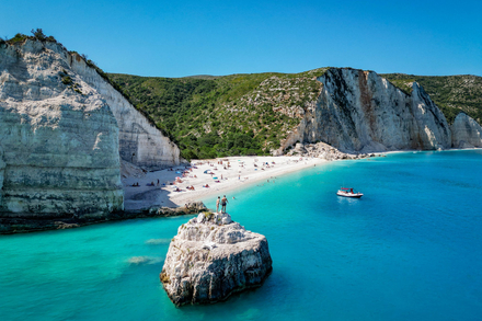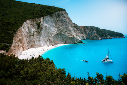 Sculptée dans les falaises blanches de l’île de Leucade, Porto Katsiki offre un paysage de carte postale. La plage, accessible par une impressionnante série de marches, s’étend au pied d’une paroi vertigineuse qui plonge dans une mer turquoise. Malgré sa popularité estivale, elle conserve une force visuelle impressionnante. Chaque heure modifie l’éclairage, chaque saison son ambiance. Le site reste fragile : les éboulements passés ont rappelé l’instabilité du lieu. Pourtant, rien ne semble altérer le magnétisme de cette enclave minérale, où la Méditerranée offre l’un de ses visages les plus radicaux.