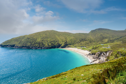 Sur l’île d’Achill, dans le comté de Mayo, Keem Beach est l’une des plus belles plages d’Irlande, et l’une des plus secrètes du continent. Enserrée entre deux versants herbeux, elle forme une anse presque parfaite, où l’Atlantique s’infiltre avec retenue. L’eau, limpide mais fraîche, surprend par sa clarté. Autour, aucun bâtiment visible depuis la plage, juste la lande, les moutons et les falaises. C’est aussi un site connu des plongeurs pour l’observation des requins-pèlerins en migration estivale. Plus qu’une destination balnéaire, Keem Beach est une immersion dans un paysage intact, modelé par les éléments.