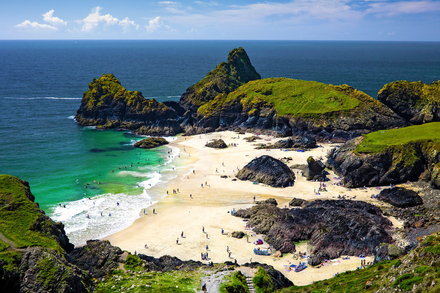 L’Angleterre n’est pas en reste. Sur la péninsule de Lizard, Kynance Cove offre une variation géologique spectaculaire. Rochers sombres striés de rouge, arches naturelles, piscines marines : le décor change à chaque marée, sculpté par la houle et le vent. Accessible à pied depuis un parking en hauteur, la plage reste sauvage, malgré sa fréquentation régulière. À marée basse, les criques annexes se découvrent, les cavités s’ouvrent. La lumière, souvent capricieuse, donne à l’ensemble une ambiance cinématographique. Une plage d’observation et de patience, plus que de détente.