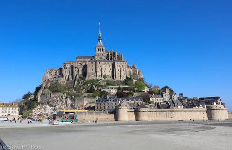 Classée au patrimoine mondial de l’UNESCO, la baie du Mont-Saint-Michel couvre près de 500 km2 de vasières, grèves, herbus et chenaux changeants. Au centre, posée sur un îlot granitique, l’abbaye bénédictine du Mont-Saint-Michel domine les sables et les eaux comme un mirage médiéval. À marée haute, elle semble flotter. À marée basse, elle se retrouve encerclée d’un désert miroitant, traversé par des filets d’eau et parcouru de reflets mouvants.