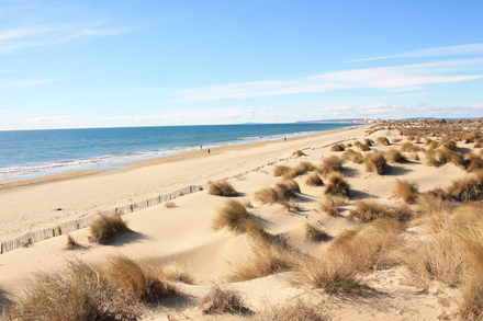 Située à l’extrême est du littoral occitan, la plage de l’Espiguette est un véritable espace naturel préservé. Ses dunes majestueuses et son sable blond s’étendent sur plus de dix kilomètres, offrant un décor quasi désertique à quelques pas du port de plaisance. Classée site naturel depuis 1998, elle séduit autant les familles en quête de tranquillité que les amateurs de sports de glisse, très présents en haute saison. Son classement Pavillon Bleu atteste de la qualité de ses eaux et de la gestion durable du site.