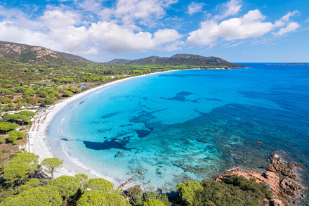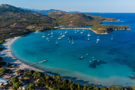 Palombaggia, c’est l’icône. Souvent citée parmi les plus belles plages d’Europe, elle s’étire en arc parfait sur près de deux kilomètres, bordée de pins parasols, de dunes discrètes et de rochers ocres qui contrastent avec le bleu azur de la mer. Le sable, d’une finesse rare, semble blanc sous le soleil écrasant de l’été. L’eau, peu profonde sur une longue distance, est d’une clarté exceptionnelle. Malgré sa fréquentation, le site conserve un charme naturel évident. Il suffit de s’éloigner un peu des accès principaux pour retrouver une quiétude intacte. Ici, tout rappelle les paysages tropicaux - mais avec l’accent corse.