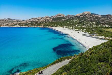 Enserrée dans une baie bien protégée, la plage de Campomoro offre une grande étendue de sable doré adossée à un petit village paisible. Ici, le rythme est lent, l’ambiance familiale, et la mer d’une transparence rassurante. Sur la gauche, un sentier côtier mène à la tour génoise, avec des points de vue superbes sur le golfe. Le site reste fréquenté, mais sans excès, et la douceur des lieux en fait une halte idéale pour quelques jours de détente. L’un des rares endroits où authenticité et baignade font bon ménage.