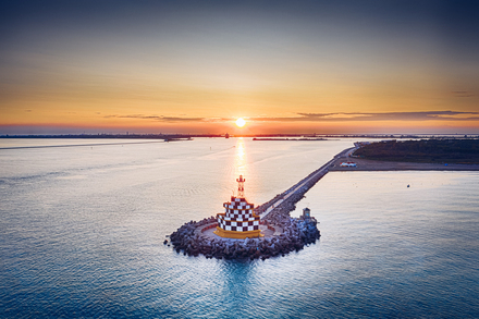 En longeant la plage vers le port, on atteint le barrage en pierre, lieu de promenade prisé des pêcheurs, qui débouche sur le phare de Punta Sabbioni. Ce dernier, avec sa silhouette inspirée des pagodes asiatiques, offre une vue saisissante sur l’entrée du port de Venise. Un décor idéal pour les photographes comme pour les contemplatifs.