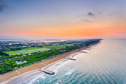 Ici, on peut alterner entre longues séances de farniente et balades actives à vélo, grâce aux nombreuses pistes cyclables qui serpentent entre mer, lagune et campagne. C’est aussi un point de départ pour des excursions vers les îles de la lagune - Burano, Torcello, ou même Venise - via les embarcadères situés à quelques encablures.