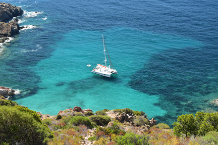 Par vent d’est, la côte ouest offre plusieurs criques protégées, accessibles uniquement aux bateaux à faible tirant d’eau. L’une des plus belles : Cala Vinagra, encaissée dans la roche, où seuls les multicoques peuvent s’approcher suffisamment pour dormir à l’abri. L’île a un charme fou, entre influence ligure, nature volcanique, et eaux cristallines. Et grâce à l’autonomie du catamaran, il est facile d’y rester plusieurs jours sans contact avec la terre ferme.