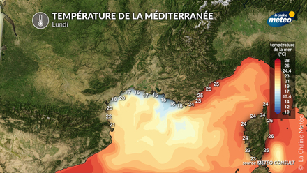 Sous l’effet du vent, les couches superficielles de la mer sont repoussées vers le large. En retour, des eaux plus profondes - et donc bien plus froides - remontent à la surface. Ce phénomène bien connu des océanographes s’appelle l’upwelling, ou remontée d’eau froide. Il est fréquent en Méditerranée, mais cette semaine, son intensité surprend.