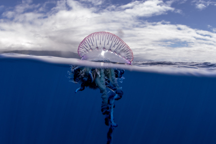 La physalie n’est pas une méduse, mais une colonie de polypes marins spécialisée dans diverses fonctions : flottaison, nutrition, reproduction... Son flotteur gélatineux peut atteindre 30 cm, et ses tentacules, invisibles depuis la surface, s’étirent parfois jusqu’à 20 mètres. Ces filaments libèrent une toxine très urticante, capable de provoquer douleurs intenses, éruptions cutanées, voire dans certains cas une détresse respiratoire.