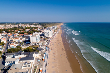 Au cœur de la célèbre station balnéaire, la grande plage des Sables-d’Olonne s’étire sur plus de 3 kilomètres en plein centre-ville. Orientée plein sud, elle bénéficie d’un ensoleillement optimal et d’une animation constante en été. Sa promenade bordée de terrasses, ses clubs de plage et son front de mer art déco lui confèrent une atmosphère vivante et conviviale. C’est aussi un excellent spot pour la baignade grâce à sa pente douce et à la surveillance en saison.