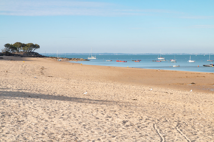 À la lisière entre Saint-Jean-de-Monts et Saint-Hilaire-de-Riez, la plage des Demoiselles s’étend sur plusieurs kilomètres de sable fin, bordée par une large esplanade animée. Très appréciée des familles, elle offre de vastes espaces pour la baignade et les jeux de plage, avec une pente douce et une zone surveillée en saison. En retrait, la promenade plantée de palmiers et les cabines de plage colorées rappellent le charme des stations balnéaires d’autrefois. C’est aussi un point de départ idéal pour les balades à vélo ou à pied à travers la forêt domaniale qui borde le littoral.