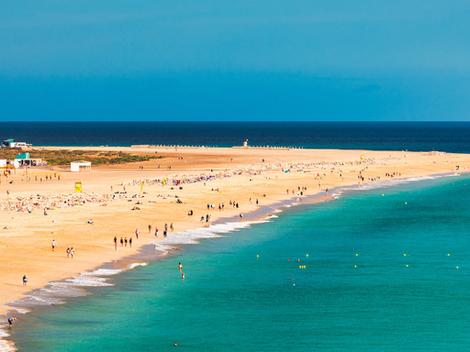 Les plages de Fuerteventura sont de véritables fresques naturelles. Au nord, le parc naturel des dunes de Corralejo offre un spectacle saisissant : des vagues de sable blanc s’étendent sur des kilomètres avant de plonger dans une mer turquoise. À l’extrême sud, la plage de Cofete déploie un sable blond balayé par les vents, dans un décor dominé par la silhouette imposante de la cordillère de Jandía. Entre ces deux extrêmes, des dizaines de criques plus confidentielles alternent avec de larges baies aux eaux peu profondes, parfaites pour se détendre. Chaque plage a sa personnalité ; sauvage, douce ou sportive ; mais toutes partagent cette sensation de liberté qui définit l’âme de l’île.