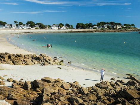 Célèbre pour son décor puissant, cette plage encaissée entre deux falaises offre un vrai face-à-face avec l’Atlantique. Ici, le sable blond s’élance sous des masses rocheuses impressionnantes, les vagues frappent fort, et l’air salé bouscule les cheveux. On y vient autant pour s’y baigner que pour sentir l’énergie du large. Très connue sur la presqu’île, Port Bara est un incontournable de la côte sauvage, à vivre les yeux grands ouverts.