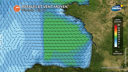 Le ciel reste clair ou peu nuageux, avec des températures maximales de 24 à 28°C du nord au sud. La mer, de 17 à 23°C°, sera belle à peu agitée le soir. L'indice UV de 6 à 7 nécessite une protection solaire continue. En mer, le vent d'est nord-est, force 4 à 5, tournera vers le nord nord-est en fin de journée, avec des rafales de 21 nœuds entre Lorient et Saint-Nazaire. Profitez de la mer calme pour la plaisance malgré des risées liées aux brise, mais soyez attentifs aux changements de vent.
