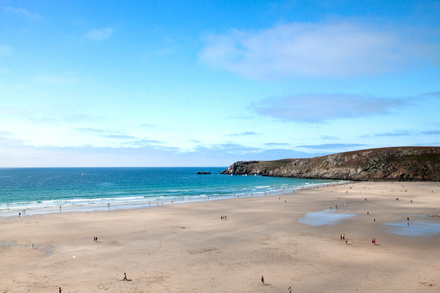 Dominée par le phare de Pontusval, cette plage allie douceur et majesté. Le sable fin contraste avec les énormes rochers granitiques qui émergent de l’eau turquoise, créant un décor de carte postale. À marée basse, les familles explorent les mares laissées par la mer, à la recherche de coquillages et de petits crabes. Le site, très photogénique, attire autant les promeneurs que les passionnés de photographie.