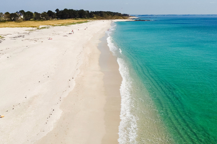 Son nom exotique n’est pas usurpé : la plage de Tahiti, à Carantec, rayonne par la clarté de son sable et la luminosité unique de ses eaux. Protégée par des pointes rocheuses, elle offre une atmosphère presque intime malgré son succès en été. Les familles y trouvent un cadre idéal pour la baignade, tandis que les amateurs de voile et de kayak explorent la baie, ponctuée d’îlots. À marée basse, la plage s’élargit et révèle un décor changeant, où l’on peut marcher longtemps sur un tapis doré.