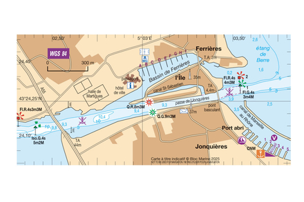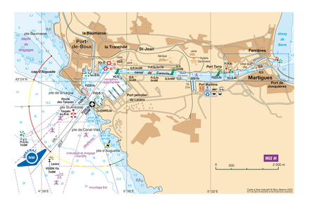 L’entrée par la mer se fait via le canal de Caronte, qui relie le golfe de Fos à l’étang de Berre. Tous les mouvements et demandes d’accès doivent être formulés sur VHF 12 (indicatif Fos Port Contrôle) auprès de la vigie de Port-de-Bouc, disponible 24h/24. La navigation uniquement à la voile est interdite dans le canal de Caronte entre la bouée des Tasques et la bouée n°4 de l’étang de Berre.