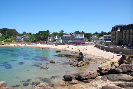 Lieu animé et convivial, le Coz-Pors combine détente et découverte. Sa plage de sable doré est bordée de terrasses accueillantes et d’un aquarium marin qui séduit petits et grands. C’est l’endroit parfait pour alterner baignade et promenade, avec une vue splendide sur les chaos granitiques et les îlots environnants. Quand la marée se retire, les bancs de sable s’étirent et transforment le paysage, offrant une nouvelle dimension au décor marin.