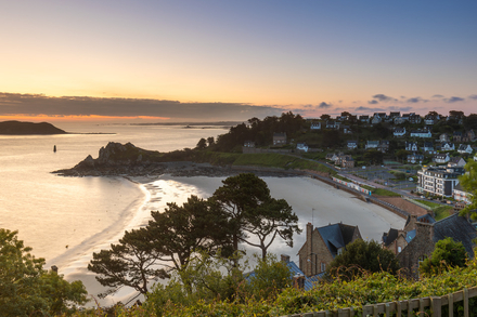Dominée par les rochers de granit rose aux formes spectaculaires, cette petite plage est l’un des symboles de la Bretagne. L’oratoire de Saint-Guirec, posé sur un rocher en bord de mer, lui donne un caractère singulier, chargé de légendes. Ici, chaque marée redessine le décor, révélant ou engloutissant les reliefs de granit. Les balades alentours permettent de rejoindre le fameux sentier des Douaniers, avec des panoramas parmi les plus célèbres de Bretagne.
