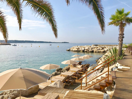 La plage du légendaire Carlton Cannes, récemment rénovée, reste une référence absolue de la Croisette. L’élégance du lieu se retrouve dans chaque détail, de la décoration raffinée aux assiettes soignées servies face à la mer. C’est un espace où l’histoire de Cannes se mêle à la modernité, où l’on vient autant pour admirer l’architecture mythique de l’hôtel que pour profiter d’un moment hors du temps. L’ambiance est chic, le service irréprochable et la cuisine méditerranéenne s’y exprime dans toute sa finesse.