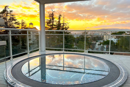 À seulement dix minutes du centre-ville, la Bastide de l’Oliveraie offre un cadre paisible au cœur d’une végétation luxuriante. Le spa de 150 m2 propose sauna, hammam, salles de massage, espace relaxation et fitness. Le clou du spectacle : le jacuzzi et le solarium sur le toit, avec une vue panoramique à couper le souffle sur Cannes et ses collines. Une adresse parfaite pour se ressourcer loin de l’agitation.