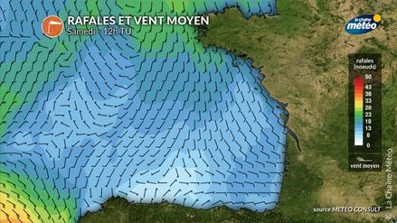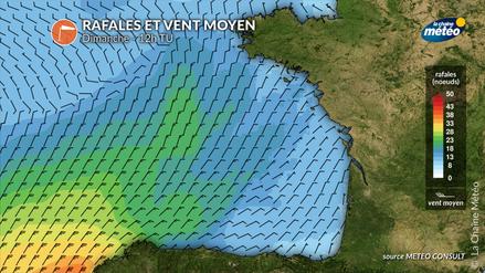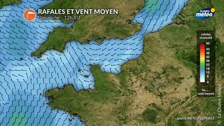 Ce dimanche : le ciel reste très nuageux avec des éclaircies, surtout au sud, et une amélioration en cours de journée. Les températures sont comprises entre 15°C et 19°C, avec une mer entre 17°C et 19°C. L'indice UV est de 3 à 4. En mer, le vent d'est à est-nord-est souffle de force 2 à 3, tournant nord à nord-nord-ouest de force 3 à 4 en milieu de journée. Les rafales atteindront 19 nœuds de Lorient à Saint-Nazaire. La mer est peu agitée, devenant assez agitée. La houle est petite et assez longue de l'ouest à ouest-nord-ouest. Les conditions sont favorables à la voile et à la plaisance, mais surveillez les changements de vent.
