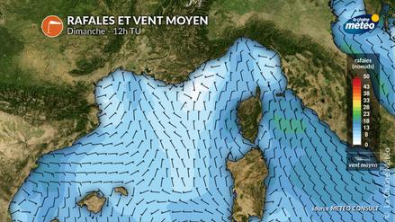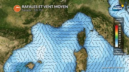 En mer, le vent de nord à nord-ouest souffle de force 2 à 4, avec des rafales atteignant 17 nœuds au nord-est des Bouches de Bonifacio. La mer reste belle à peu agitée, avec une houle petite et courte de nord à ouest. Autour du Golfe du Lion, le vent tourne plutôt au secteur Est 4 Beaufort avec des entrées maritimes brumeuses et un risque d'ondée. Les conditions sont propices aux activités nautiques et à la voile, mais restez vigilants face aux variations locales de vent.