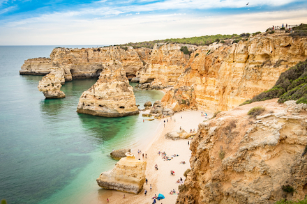Les falaises spectaculaires de l’Algarve prennent des teintes encore plus intenses à l’automne, lorsque le soleil descend plus bas et éclaire la pierre d’ocre et d’orangé. Praia da Marinha est un décor de carte postale qui séduit autant les baigneurs que les randonneurs. En octobre, l’eau tourne autour de 20 °C, assez douce pour prolonger la saison des baignades. Les sentiers du littoral, comme la fameuse randonnée des Sept Vallées Suspendues, deviennent beaucoup plus agréables à parcourir sans la chaleur écrasante de l’été.