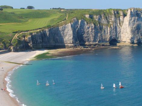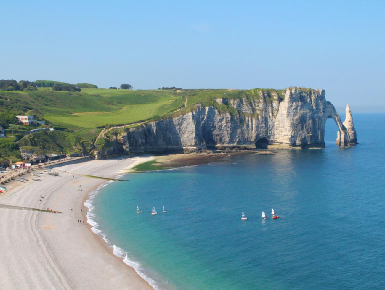 Plus fraîche mais infiniment spectaculaire, la plage d’Etretat incarne l’automne côté Manche. Les falaises blanches sculptées par le vent et la mer offrent un panorama grandiose, que la lumière rase d’octobre et novembre sublime encore davantage. Ici, les baignades sont réservées aux courageux, mais l’intérêt principal se trouve dans les balades. Le sentier des falaises mène à des points de vue incroyables sur l’arche naturelle et l’aiguille, et la plage de galets se prête aux contemplations de fin de journée, quand le ciel s’enflamme. Les amateurs de photo y trouvent une source d’inspiration inépuisable.