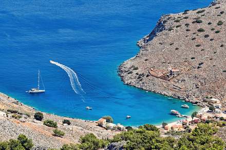 La crique de Nanou, bordée de galets clairs et protégée des vents, séduit également par son ambiance sauvage. Plus loin, des plages confidentielles comme Marathounda ou Pedi invitent à des haltes paisibles, ponctuées de tavernes isolées où déguster du poisson fraîchement pêché. Naviguer autour de Symi, c’est alterner entre le charme urbain du port et la beauté brute de criques désertes, le tout dans un rayon de quelques milles seulement.