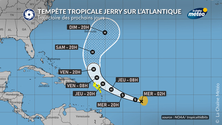 Suivez la trajectoire et l’évolution de Jerry sur La Chaîne Météo