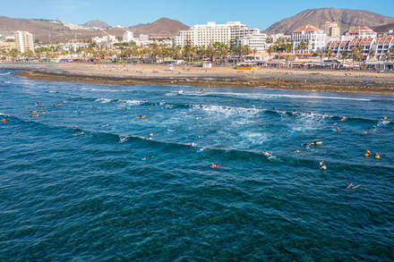 À Tenerife, la Playa de las Américas reste l’un des spots les plus fiables pour qui veut nager en octobre. Les eaux, tempérées par l’océan Atlantique subtropical, se maintiennent entre 23 et 25 °C, offrant un confort de baignade rare pour la saison. Le climat, sec et ensoleillé, garantit presque chaque jour des températures de l’air entre 25 et 27 °C. L’automne ici ressemble à un printemps éternel : la mer est accueillante, les terrasses animées, et les activités nautiques - surf, paddle ou excursions en bateau - tournent encore à plein régime. Contrairement à l’été, la fréquentation devient plus agréable : la plage garde une ambiance vivante, mais l’espace se fait plus généreux. On y retrouve le meilleur des Canaries : chaleur, constance et vitalité.