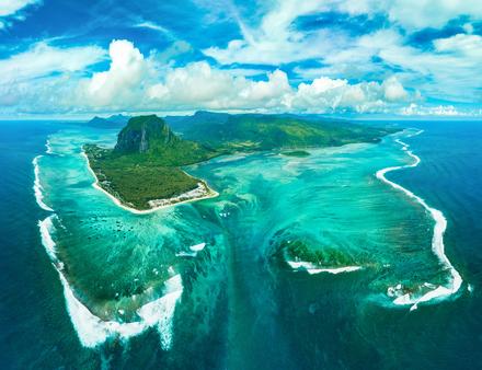Difficile de croire à ce que révèlent les photos aériennes : une chute d’eau immense qui semble plonger au cœur de l’océan Indien. Pourtant, cette "cascade sous-marine" n’a rien d’une invention. Elle se trouve bien là, au sud-ouest de l’île, près du Morne Brabant, et offre l’un des panoramas les plus fascinants de la planète. Vue du ciel, la mer se teinte d’un dégradé de bleus et de verts, donnant l’impression que l’eau s’engouffre dans un gouffre sous-marin. En réalité, ce mirage est créé par les dépôts de sable et de limon entraînés vers les profondeurs du plateau continental, où les courants marins sculptent d’incroyables motifs mouvants.