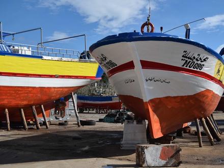 Kelibia est la troisième ville du gouvernement de Nabeul (après Nabeul et Hammamet). C’est un important port de pêche, une région où est produit du vin (muscat de Kelibia), elle possède de belles plages et a une partie historique (forteresse). La pêche très présente (15% de la production tunisienne) est souvent pratiquée à quelques milles de la côte, au lamparo, par de petits bateaux. Ce type de pêche s’effectue de nuit. Les poissons (sardines, maquereaux, ...) sont attirés par la lumière des lampes présentes sur les bateaux et se prennent dans les filets. Une des raisons, lorsque l’on fait route en bateau du Cap Bon vers Hammamet, d’éviter de longer la côte et, si possible, de le faire de jour. Kelibia n’est pas un port de plaisance, on peut toutefois y relâcher pour une escale technique. Pour un plaisancier, le visite du port ne manque pas d’intérêt, vous y découvrirez un port actif avec des bateaux de pêche très colorés ainsi qu’une partie du quai du môle de l’ancien port. A ne pas manquer sur les hauteurs, la citadelle (XVIè siècle) où l’on peut voir des ruines de l’ancienne ville et d’où l’on a une vue imprenable sur la région et la mer. Côté artisanat, Kelibia s’est spécialisée dans les meubles de style. Proche de Kelibia se trouve Kerkouane. Dans cette ville, un musée est implanté à l’entrée du site archéologique. Ce site a la particularité de ne pas avoir été reconstruit après sa destruction (IIIè siècle av J.C.) et, de ce fait, restitue l’image réelle d’une cité punique. Ce sont les seuls exemples d’architecture punique à n’avoir subi aucune modification de la civilisation postérieure. Pour cette raison, la cité est classée depuis 1986 au patrimoine mondial de l’Unesco. On peut y voir de nombreux objets qui ont été retrouvés sur le site et qui permettent d’avoir une idée de la vie à cette époque.