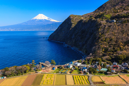 La rive ouest, plus douce, accueille les villes de Shizuoka et Yaizu, avec des zones agricoles, des ports de pêche et des plages aménagées. Des criques plus discrètes se trouvent autour de Mochimune ou Omaezaki, mais l’essentiel du rivage est habité, structuré, avec peu de zones totalement sauvages.