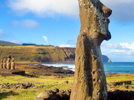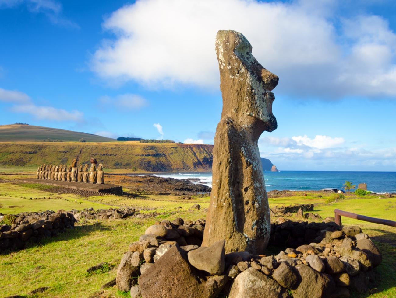 Le site est surtout connu pour ses moais parfaitement conservés. À Ahu Nau Nau, sept statues restaurées surplombent la plage, tandis qu’un moai isolé, Ahu Ature, complète ce panorama unique. Des sanitaires, un parking et quelques kiosques permettent aujourd’hui d’y passer plusieurs heures sans difficulté, même en haute saison.