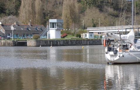 - à Plouer-sur-Rance, toujours sur la rive gauche, à 6 milles au sud du barrage, port « tout confort » très bien tenu. Il convient d’être vigilant sur les heures d’ouverture et quand le feu passe au vert, il est préférable d’attendre un bon quart d’heure pour passer car le courant propulse littéralement le bateau dans le port ;