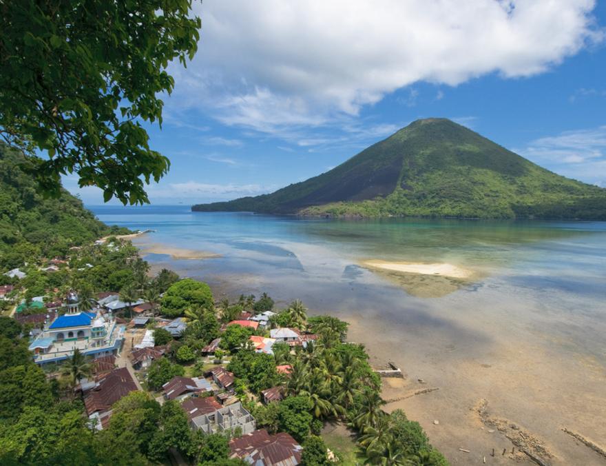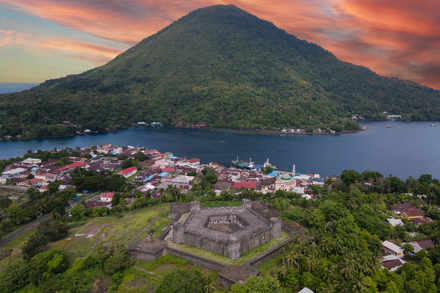 Face à Banda Neira se dresse le Gunung Api, littéralement "la montagne de feu". Ce cône parfait, culminant à 656 mètres, a forgé la géographie et la fertilité de l’archipel. Son éruption en 1988 a transformé les fonds marins alentour : les coulées de lave ont créé des structures coralliennes spectaculaires, aujourd’hui considérées parmi les plus riches du monde.