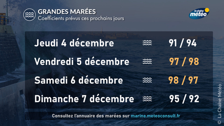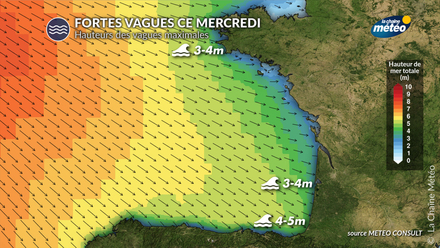 Avec de fortes vagues déferlant sur le littoral et d’importants coefficients de marée (entre 90 et 100) entre jeudi et samedi, la grande prudence est de mise sur les plages les plus exposées de Bretagne et d’Aquitaine. Les promeneurs qui s’aventureraient le long des digues ou des jetées ainsi que des zones de rochers accessibles à pied peuvent se faire surprendre par de fortes vagues à tout moment...