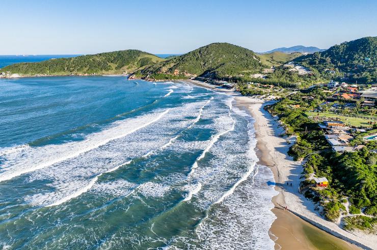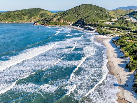 Entre juillet et novembre, les baleines franches australes viennent y mettre bas, transformant la baie en un véritable théâtre naturel accessible depuis la côte. Cette présence saisonnière renforce l’aura de Praia do Rosa, souvent décrite comme l’une des plus belles baies du Brésil, à la fois sauvage et intimiste, où le visiteur est toujours entouré du bruit du vent, du roulis de l’océan et du parfum des forêts voisines.