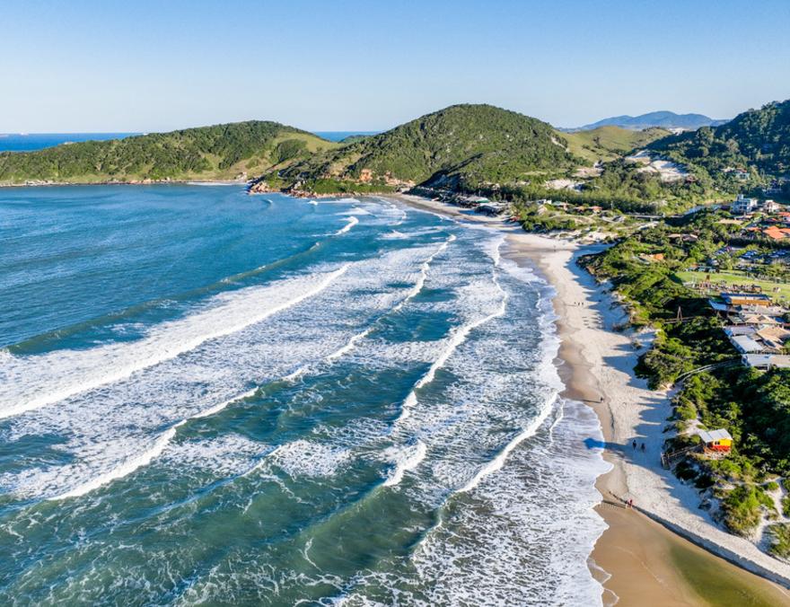 Praia do Rosa, dans l’État de Santa Catarina, est une baie rare où la nature a gardé la main. Sa forme en arc naturel, bordée de collines couvertes de végétation atlantique, de sentiers escarpés et de petites lagunes intérieures, crée un écosystème d’une richesse remarquable. Longtemps refuge de pêcheurs, le site est devenu un symbole de préservation, où surf, observation de la faune et respect de l’environnement cohabitent harmonieusement.