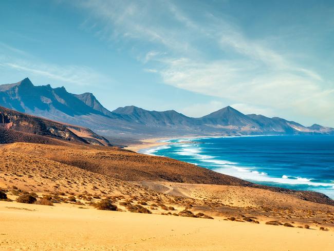 Sur la côte est, le paysage raconte aussi une autre histoire, plus récente. Depuis plusieurs années, les vents dominants transportent des particules de sable venues tout droit du Sahara. Petit à petit, ce sable s’est déposé sur certaines zones de l’île, transformant peu à peu les reliefs. Des montagnes autrefois d’un marron profond apparaissent aujourd’hui recouvertes d’une fine couche claire. Le phénomène est encore plus visible sur les plages. Là où le sable volcanique noir dominait, on trouve désormais un sable blanc et fin, presque désertique. Le contraste avec l’océan est saisissant. La beauté de Fuerteventura n’a pas disparu avec le temps, elle a simplement évolué, offrant un visage différent de celui que connaissaient les voyageurs d’il y a vingt ou trente ans.