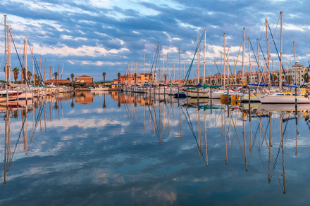 Mais Gruissan ne se résume pas à son village perché. En contrebas, le port de plaisance joue un rôle central dans la vie locale, reliant le village historique à la Méditerranée. Il apporte une animation complémentaire, plus ouverte, tout en restant intimement liée à l’identité du lieu. Cette coexistence entre le village circulaire, les ports et les espaces lagunaires donne à Gruissan une dynamique particulière, entre traditions maritimes, activité nautique et paysages puissants, qui en fait une escale vivante et profondément ancrée dans son territoire.