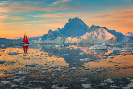 Au Groenland, la notion de frontière entre la terre et la mer est presque abstraite. La côte, extrêmement découpée, déroule une succession de fjords profonds, de caps rocheux, d’îlots et de baies où l’océan s’enfonce parfois sur des dizaines de kilomètres à l’intérieur des terres. Les montagnes surgissent directement de l’eau, souvent coiffées de neige même en été, tandis que les glaciers descendent lentement vers la mer, sculptant le paysage depuis des millénaires. Dans les régions du sud et de l’ouest, la toundra se teinte de vert dès que la saison le permet. Mousses, lichens et fleurs arctiques contrastent avec la minéralité des reliefs et la blancheur persistante des sommets. Plus au nord, la glace reprend le dessus, omniprésente, donnant au paysage une dimension presque irréelle. La lumière arctique joue un rôle central, transformant sans cesse les couleurs, les volumes et les perspectives, que l’on soit à terre ou à bord d’un bateau.