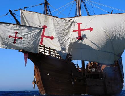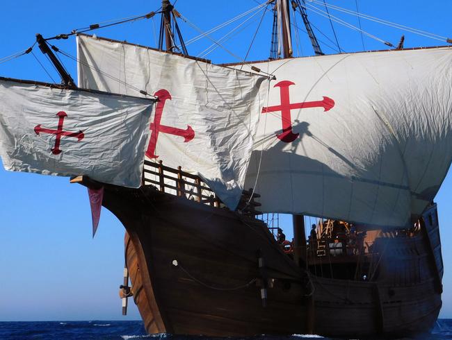 La Santa Maria appartient à l’imaginaire collectif depuis 1492. C’est à son bord que Christophe Colomb mène l’expédition espagnole qui traverse l’Atlantique et atteint les côtes du Nouveau Monde le 12 octobre de cette année-là, après 33 jours de navigation depuis les Canaries. Navire amiral de l’expédition, la Santa Maria était une caraque d’environ 29 mètres de long, plus lourde et plus large que ses compagnes, la Pinta et la Niña. Conçue pour le transport de marchandises et adaptée aux longues traversées, elle offrait davantage de capacité mais se révélait moins maniable que les caravelles qui l’accompagnaient. L’originale ne regagnera jamais l’Europe : échouée sur les côtes d’Hispaniola à la fin de l’année 1492, elle sera partiellement démontée pour construire le fort de La Navidad, première implantation espagnole dans les Caraïbes. Sa destinée nourrit depuis plus de 5 siècles récits, recherches et reconstitutions. La réplique aujourd’hui en tournée en France s’inscrit dans cette volonté de transmission. Conçue comme un musée flottant, elle permet de comprendre, au plus près, les conditions de navigation du XVe siècle.