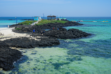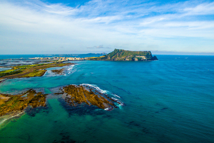 Au sud de la péninsule, l’île de Jeju concentre une grande partie de l’imaginaire touristique coréen. D’origine volcanique, elle offre des paysages puissants. Les falaises basaltiques noires contrastent avec la mer, les tunnels de lave classés à l’UNESCO témoignent de son passé géologique et le cône de Seongsan Ilchulbong domine l’horizon maritime.