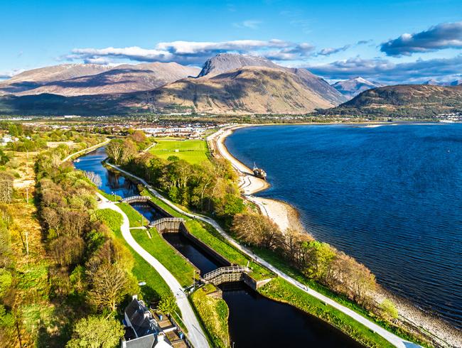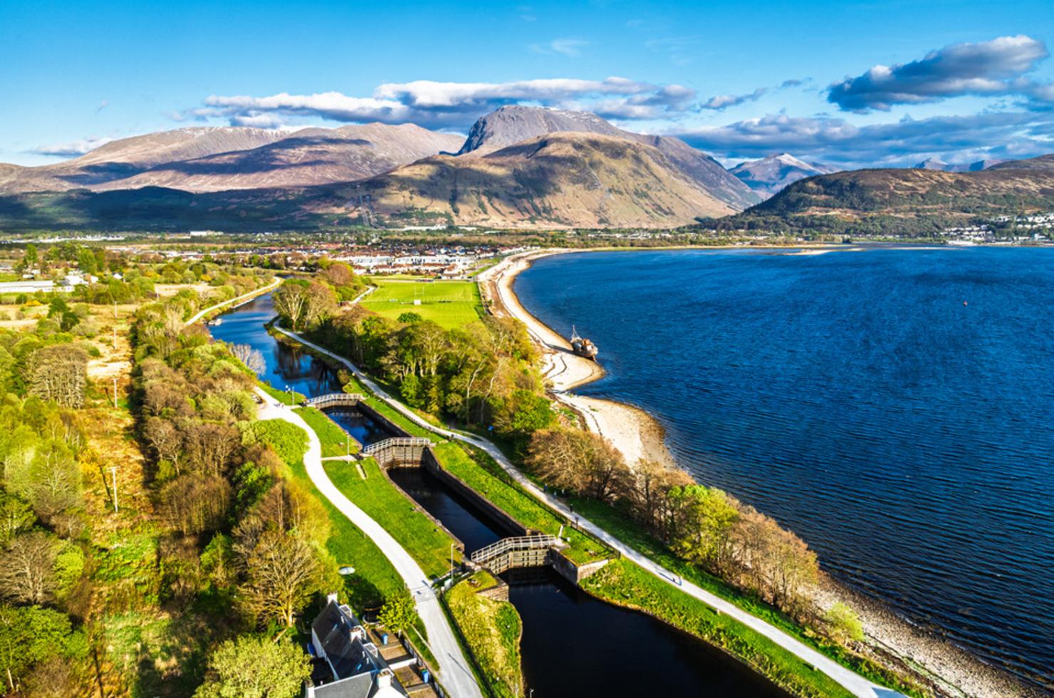 Le canal calédonien est officiellement inauguré en 1822 après près de 20 ans de travaux. Imaginé par l’ingénieur écossais Thomas Telford, il devait sécuriser les routes maritimes britanniques à une époque où les conflits européens rendaient certaines zones vulnérables. L’objectif était double : protéger le commerce et stimuler l’économie des Highlands, alors en difficulté. Sur les 96 km du tracé, seuls 35 km ont été réellement creusés. Le reste exploite intelligemment une chaîne de lochs naturels : Loch Dochfour, Loch Ness, Loch Oich et Loch Lochy. Ce choix technique a permis de limiter les travaux tout en conservant un axe navigable de grande ampleur. Le canal compte 29 écluses, 10 ponts tournants et 4 aqueducs. L’ensemble forme un système cohérent, toujours en activité et entretenu par Scottish Canals. L’ouvrage le plus emblématique reste Neptune’s Staircase, à Corpach : 8 écluses successives permettant de franchir près de 20 m de dénivelé face au Ben Nevis, culminant à 1 345 m. La manœuvre, lente et méthodique, impressionne autant les équipages que les visiteurs installés le long des berges.