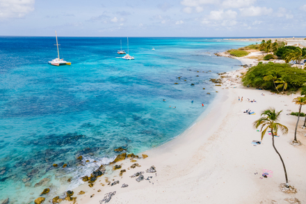 Quatrième du classement mondial Tripadvisor, Eagle Beach est l’une des plages les plus réputées d’Aruba et plus largement des Caraïbes. Elle se distingue par son sable blanc très fin et par la clarté remarquable de son eau. Le paysage est marqué par les célèbres arbres divi divi, tordus par les vents dominants, qui sont devenus un symbole de l’île. La plage s’étend sur une large bande de sable et offre un espace idéal pour la baignade ou les activités nautiques. Les couchers de soleil y sont particulièrement appréciés, lorsque la lumière transforme l’horizon en un dégradé d’orange et de rouge.