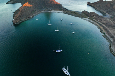 Depuis La Paz, on entre directement dans la mer de Cortez, ce golfe mythique souvent qualifié d’« aquarium du monde ». La réputation du lieu tient autant à la qualité de navigation qu’à son extraordinaire richesse naturelle. Le secteur permet de construire des itinéraires fluides, avec des mouillages bien répartis, souvent sur fond de sable, et de nombreuses zones abritées. Cette lisibilité plaît autant aux équipages qui veulent découvrir la région sans navigation compliquée qu’à ceux qui cherchent une croisière plus contemplative, tournée vers la baignade, le snorkeling et la découverte des îles. La mer de Cortez fait surtout la différence par sa biodiversité. Dauphins, raies manta, lions de mer et cétacés font partie des observations régulières dans la région, ce qui donne à chaque navigation une dimension spectaculaire. Pour un programme de croisière, c’est un vrai argument : on ne vient pas seulement ici pour changer de mouillage, on vient aussi pour voir, observer, explorer.
