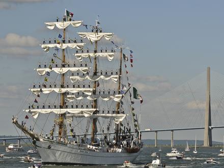 A ce titre, une quarantaine de navires dont deux bâtiments exceptionnels sont attendus. Le Kruzenshtern (plus long voilier du monde, 114.5m) et le Monge (plus grand navire qui puisse actuellement amarrer sur les quais de Rouen) en seront les deux invités incontournables.